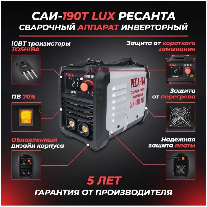 Сварочный аппарат Ресанта САИ-190Т LUX инвертор ММА DC 7.2кВт