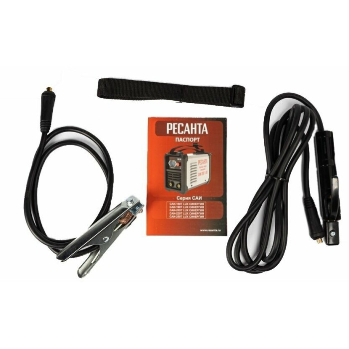 сварочный аппарат 1 шт., кабель с электрододержателем 1 шт., кабель с клеммой заземления 1 шт., паспорт (инструкция) 1 шт.,
