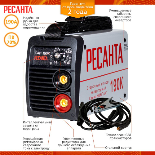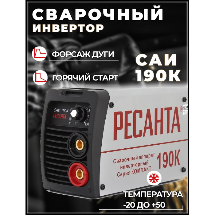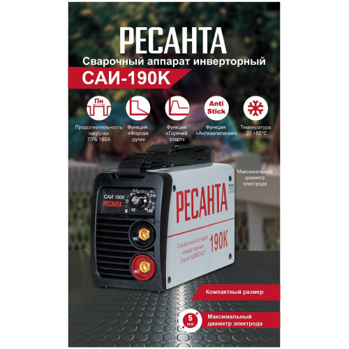 Сварочный аппарат инверторный Ресанта САИ190К (компакт) - это надежное и удобное решение для ручной сварки в бытовых и производственных условиях. Аппарат прост в использовании и легко регулируется, обеспечивая безопасность и стабильность работы.