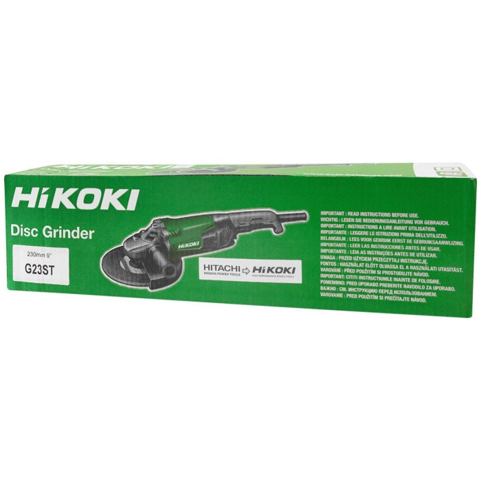Hikoki G23ST — многофункциональный инструмент сетевого типа. С его помощью можно выполнять резку и другие виды обработки материалов с высокой плотностью. В качестве сменной оснастки используют абразивные диски, диаметр которых не превышает 230 мм. Электрический двигатель щеточного типа. Его мощность — 2000 Вт. Это позволяет эффективного обрабатывать самые прочные материалы, включая металл и бетон. Двигатель передает крутящий момент на шпиндель, который вращается со скоростью 6600 об/мин.