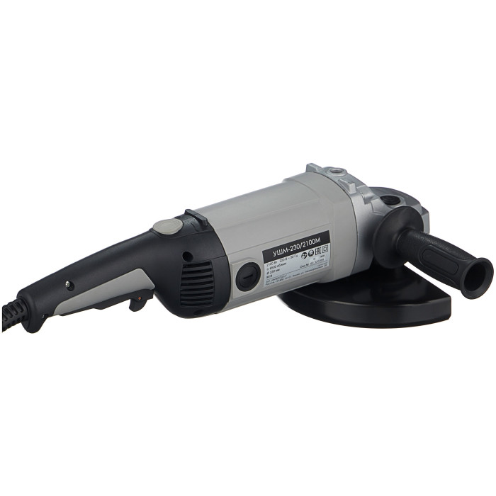 машина шлифовальная угловая, руководство по эксплуатации и инструкция по безопасности, кожух защитный, рукоятка боковая, ключ специальный, гайка крепления шлифкруга, фланец опорный шлифкруга