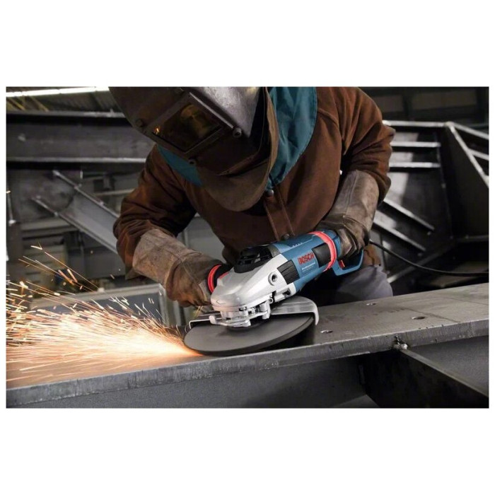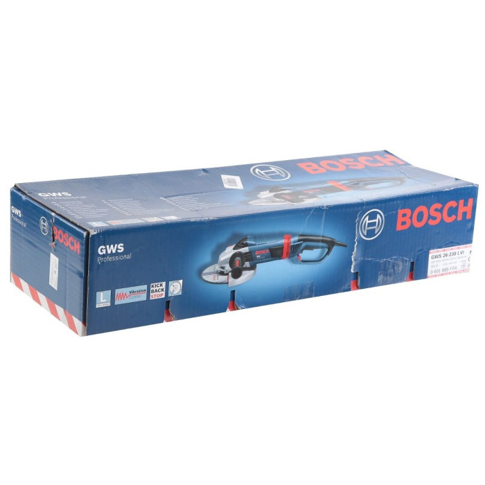 Машина шлифовальная угловая Bosch GWS26-230LVI оборудована мощным мотором «Чемпион» на 2600 Вт. При этом, болгарка весит всего 5,6 кг, благодаря чему выбивается в категорию лидеров своего профиля. Такое сочетание рабочих характеристик. Редко встретишь. Система гашения вибрации позволяет оператору работать без усталости в течение продолжительного времени. Углошлифовальная машина предназначена, в первую очередь, для профессионального сегмента и интенсивного выполнения промышленных объемов задач. Она станет прекрасным приобретением для вашего производства.