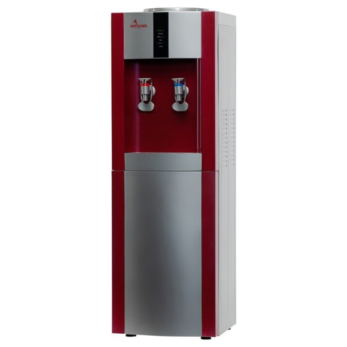 тип: кулер, напольный, тип охлаждения: компрессорное, верхняя установка бутылки, нагрев, мощность нагрева: 550 Вт, мощность охлаждения: 90 Вт, шкафчик для посуды, ширина: 31 см, глубина: 31 см, высота: 97 см, вес: 14 кг