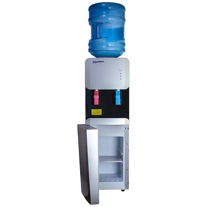 тип: кулер, напольный, тип охлаждения: электронное, верхняя установка бутылки, нагрев, мощность нагрева: 700 Вт, мощность охлаждения: 70 Вт, шкафчик для посуды, ширина: 31 см, глубина: 34 см, высота: 95 см, вес: 7.98 кг