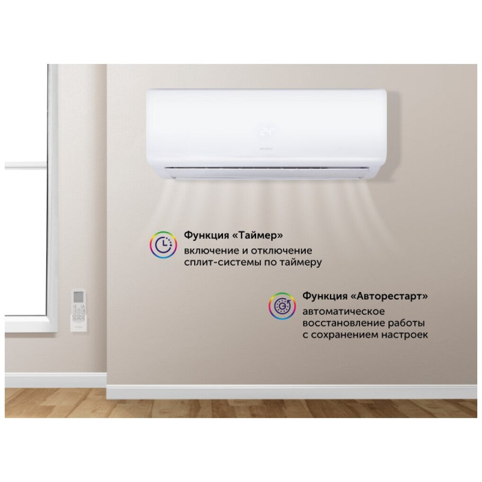 пульт ДУ, регулировка направления воздушного потока, дисплей, таймер включения/выключения, индикация работы