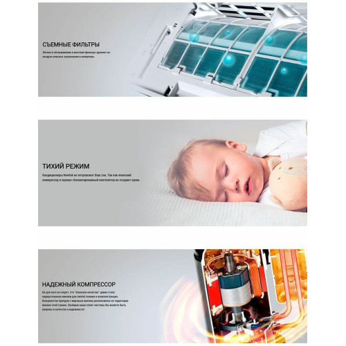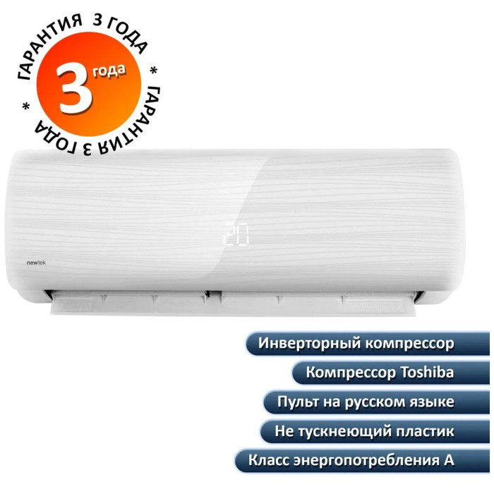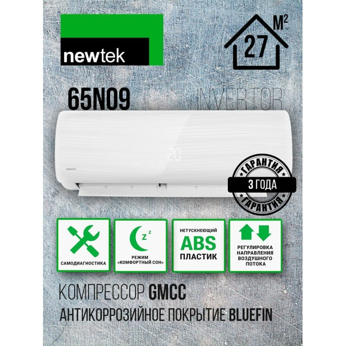 Преимущества Сплит-системы Newtek NT-65N09 inverter: Белоснежный ABS-пластик, устойчивый к УФ-лучам. Надежный компрессор Toshiba/GMCC, антикоррозийное покрытие GOLDEN FIN, 5 скоростей, энергоэффективность А+, экономия электроэнергии до 35%, эффективный обогрев до -15°, русифицированный пульт, гарантия 3 года.