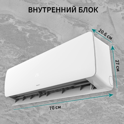 тип кондиционера: сплит-система, площадь помещения: 21 – 30 м², Мощность кондиционера (BTU): 9, режим работы: обогрев, охлаждение, дополнительные режимы: ночной, осушение, турбо, экорежим, класс энергопотребления: A, особенности: дисплей, индикация работы, пульт ДУ, регулировка направления воздушного потока, таймер включения/выключения, максимальный уровень шума: 5 дБ