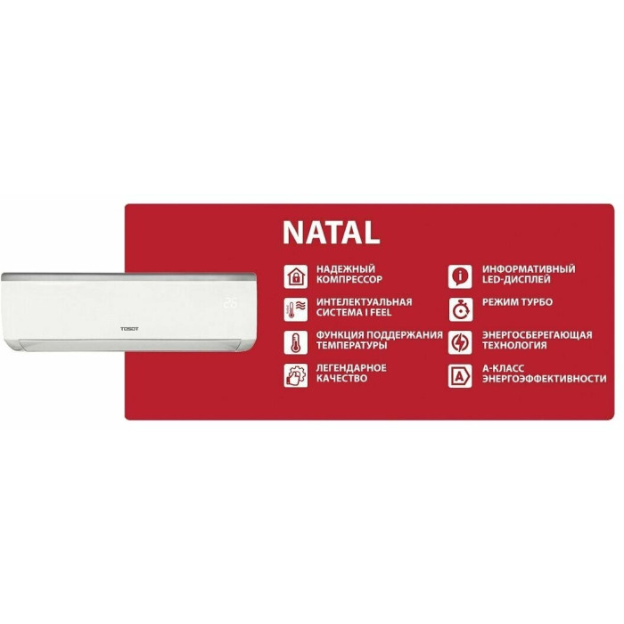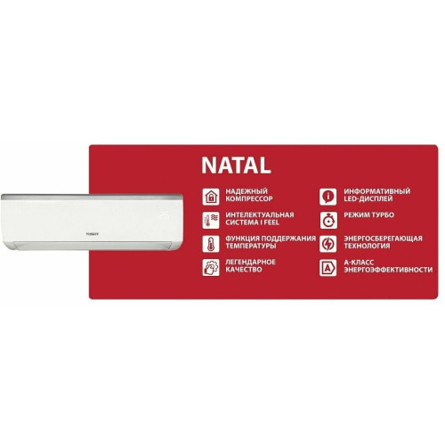 NATAL NEW — задает стандарт современного кондиционера постоянной производительности, предлагая пользователю все необходимые технологии для управления климатом. Удобное расположение системы фильтров в верхней части внутреннего блока позволяет с легкостью производить очистку. Двойные жалюзи обеспечивают более комфортный воздушный поток. Благодаря обновленной конструкции внутреннего блока NATAL, уровень шума в тихом режиме снижен до 24 дБ, а за счет улучшенной конструкции вентилятора увеличен расход воздуха.