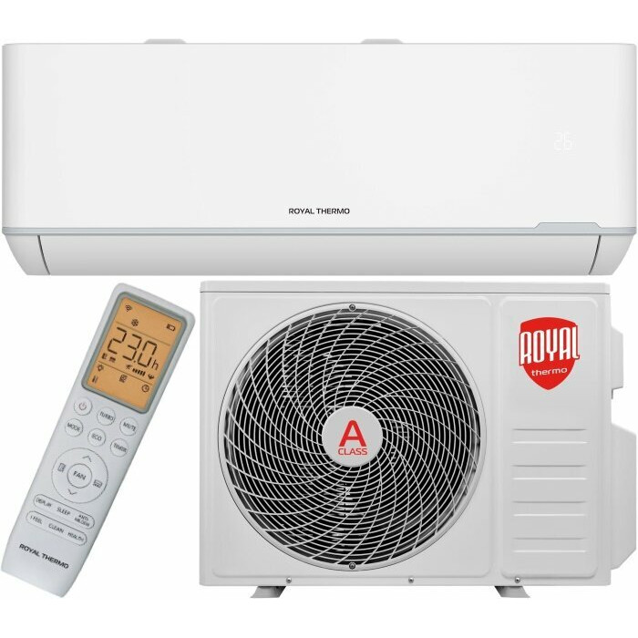 В комплекте: наружный блок кондиционера, внутренний блок, пульт управления.