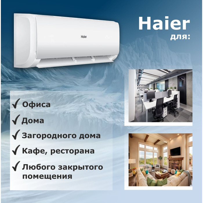 Антибактериальный фильтр для защиты и очищения Blue Fin антикоррозийное покрытие теплообменников наружного и внутреннего блоков Intelligent Air режим комфортного охлаждения и обогрева 24-часовой таймер поддержание параметров воздуха в помещении Инверторный компрессор эффективность и тихая работа R32 энергоэффективный и экологичный фреон Авторестарт Функция «Авторестарт» автоматически возобновит последний режим работы кондиционера после устранения проблем с электропитанием, обеспечивая безопасность и удобство в работе. Wi-Fi управление (evo) Новая IoT экосистема evo от Haier позволяет удаленно управлять по Wi-Fi кондиционерами и другой совместимой бытовой техникой Haier. Управление осуществляется через мобильное приложение evo. Преимущества: Инверторный компрессор Антикоррозийная защита теплообменника Скрытый дисплей Режим комфортного сна Удаленное управление Wi-Fi evo Режим авто 24 часовой таймер Авторестарт Быстрое охлаждение Комфортный режим inteligent air flow Общие спецификации: Охлаждение (Вт): 2050 (1000—2600) Обогрев (Вт): 2100 (1100—2700) Энергоэффективность: A / A Тип двигателя: Инвертор Площадь, м²: 13 – 20 Производительность: ER/COP (Среднее значение): 3.21 / 3.61 Электропитание (Ф/В/Гц): 1 / 230 / 50 Потребляемая мощность охлаждение (Вт): 640 (400—1000) Потребляемая мощность нагрев (Вт): 580 (400—750) Обработка воздуха: Расход воздуха (м3/ч): 450 Установка: Тип используемого хладагента: R32 Диаметр жидкостной линии (мм): 6.35 (1/4) Диаметр газовой линии (мм): 9.52 (3/8) Максимальная длина трассы (м): 15 Максимальный перепад высот трассы (м): 10 Внутренний блок: Габаритные размеры без упаковки (Ш x Г x В) (мм): 708 x 190 x 263 Габаритные размеры в упаковке (Ш x Г x В) (мм): 770 x 325 x 270 Чистый вес (кг): 7.3 Вес в упаковке (кг): 8.9 Уровень звукового давления дБ(А): 36 / 33 / 31 / 22 Наружный блок: Габаритные размеры без упаковки (Ш x Г x В) (мм): 696 х 256 х 432 Габаритные размеры в упаковке (Ш x Г x В) (мм): 807 х 314 х 485 Производитель компрессора: Qingan Чистый вес (кг): 19.8 Уровень звукового давления, (Выс. Скорость), дБ(А): 52 Дополнительные характеристики: Диапазон рабочих температур (Нагрев): -15…24°C Диапазон рабочих температур (Охлаждение): 18…43°C
