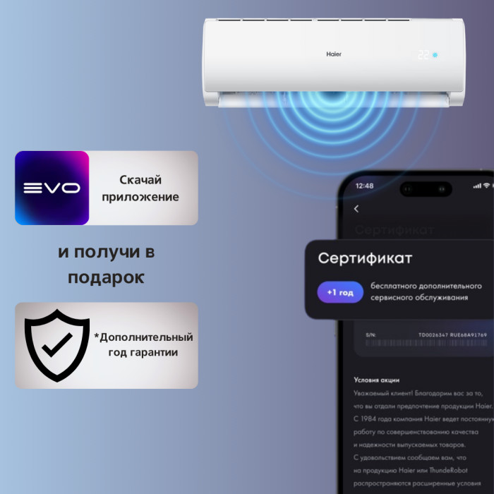 3 г., +1 год гарантии за регистрацию в приложении EVO от Haier