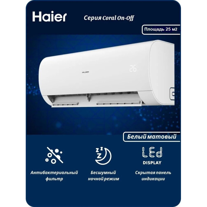 Общие данные: Установка внутреннего блока: настенная Уровень шума внутреннего блока: 36/33/31/26 дБ Уровень шума внешнего блока: 54 дБ Обогрев: 2500 Вт Охлаждение: 2500 Вт Номинальная потребляемая мощность (нагрев): 690 Вт Номинальная потребляемая мощность (охлаждение): 775 Вт Энергоэффективность EER/COP: 3,21 / 3,61 Расход воздуха (высокая скорость): 450 м³/час Тип хладагента: R-32 Фаза: однофазный Режимы: Основные режимы: охлаждение / обогрев Дополнительные режимы: вентиляция/осушение Полезные функции: Класс энергоэффективности A Антибактериальный фильтр Ag+ покрытие испарителя Комфортный сон Спиральный воздушный поток Максимальная длина воздушной струи 12 м Режим Intelligent Air Режим Turbo Функция Авторестарт Защита компрессора Карта доступа для отелей 24-часовой таймер Широкий диапазон напряжения Интеллектуальное оттаивание 5 скоростей вентилятора внутреннего блока 2 стороны подвода труб Самодиагностика Простота чистки Антикоррозийная защита Скрытый LED-дисплей Габариты и вес: Габариты внешнего блока сплит-системы (ВхШхГ): 43.2х69.6х25.6 см Габариты внутреннего блока сплит-системы (ВхШхГ): 26.5х70х19 см Вес внешнего блока: 22.4 кг Вес внутреннего блока: 7.3 кг Дополнительная информация: Диаметр газовой линии: 9,52 мм (3/8") Диаметр жидкостной линии: 6,35 мм (1/4") Дополнительная заправка: 20 г/м Макс. длина трубопроводов без дополнительной заправки: 7 м Максимальная длина/перепад высот: 15 / 10 м Вес заправляемого хладагента setup: 560 г Рекомендованная площадь (м.кв.): до 22 Производитель компрессора: Rechi Внутренний блок: AS09PHAHAA Наружный блок: 1U09ORAFAA Пульт управления: YR-HFA Диапазон рабочих температур: Охлаждение (С°): +18 ~ +43 Нагрев (С°): -7 ~ +24