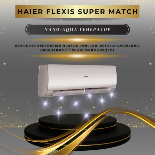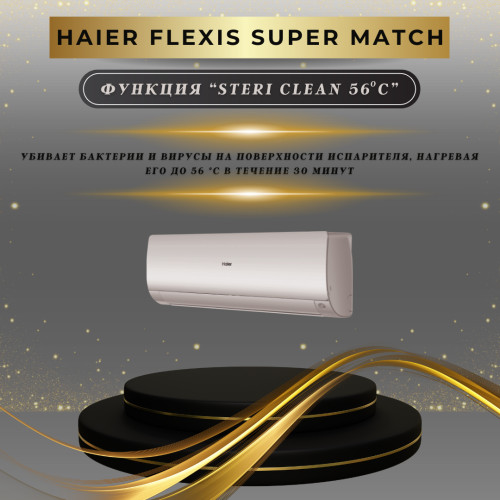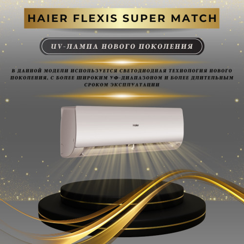 Кондиционеры серии Flexis сочетают в себе широкую функциональность и премиальный дизайн. Сплит-системы серии Flexis отлично подойдут для создания комфортного климата в квартире, частном доме или офисе летом, в межсезонье и даже зимой. Кондиционеры этой серии работают в режиме обогрева до −20С. Отличительными особенностями этой серии являются функция стерилизации теплообменника Steri Clean 56C, убивающая до 99% бактерий и микробов, и новая LED УФ-лампа. Flexis совместим с новой IoT экосистемой Haier и может удаленно управляться по Wi-Fi через мобильное приложение. Общие данные: Установка внутреннего блока: настенная Тип хладагента: R32 Фаза: однофазный Режимы: Основные режимы: охлаждение / обогрев Дополнительные режимы: вентиляция, осушение Полезные функции: Wi-Fi управление (evo) Новая IoT экосистема evo от Haier позволяет удаленно управлять по Wi-Fi кондиционерами и другой совместимой бытовой техникой Haier. Управление осуществляется через мобильное приложение evo. Экодатчик Датчик присутствия регистрирует наличие в помещении людей и их перемещения, и корректирует работу кондиционера для достижения наиболее комфортных условий и экономии электроэнергии. Фильтрация: 2 фильтра 3 в 1: здоровый и чистый воздух Самоочистка внутреннего блока SelfClean Новейшая технология очистки теплообменника позволяет удалять грязь, бактерии, микробы и другие микроорганизмы с поверхности теплообменника, используя процесс теплового расширения оттайки. Мощная УФ-лампа Мощная УФ-Лампа осуществляет фотохимическую обработку воздуха, его эффективное обеззараживание, нейтрализацию вирусов и бактерий. Стерилизация испарителя Теплообменник принудительно осушается, и с помощью интеллектуального контроля температуры и регулировки частоты вращения вентилятора, температура на теплообменнике достигает 56°С и сохраняется в течение 30 минут после активации. Дополнительная информация: Энергоэффективность: А++ / А++ Тип двигателя: Инвертор Диапазон рабочих температур (Нагрев): -20…24°C Диапазон рабочих температур (Охлаждение): -20…43°C