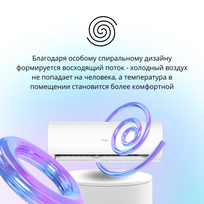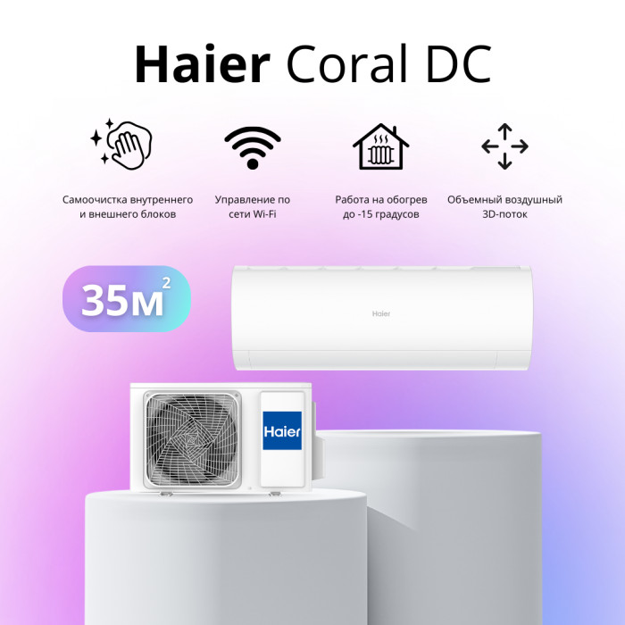 Кондиционеры серии Coral DC обладают лаконичным современным дизайном. Использование экологичного фреона R32 не только минимизирует воздействие на окружающую среду, но и обеспечивает более высокую эффективность, а значит и экономию вашего бюджета. Сплит-системы Coral DC поддерживают функцию самоочистки теплообменника (Self Clean) не только внутреннего блока, но и наружного (для моделей мощностью 5 кВт), а поверхность испарителя имеет нано-покрытие с ионами серебра Ag+. В комплекте пульт дистанционного управления с подсветкой экрана с поддержкой функции Ifeel. Общие данные: Установка внутреннего блока: настенная Тип хладагента: R32 Фаза: однофазный Режимы: Основные режимы: охлаждение / обогрев Дополнительные режимы: вентиляция, осушение Полезные функции: Спиральный воздушный поток Благодаря восходящему воздушному потоку воздух не попадает на человека, а распределение температуры в помещении становится более равномерным. Wi-Fi управление (evo) Новая IoT экосистема evo от Haier позволяет удаленно управлять по Wi-Fi кондиционерами и другой совместимой бытовой техникой Haier. Управление осуществляется через мобильное приложение evo. Объемный воздушный поток Управление горизонтальными и вертикальными створками с помощью пульта позволяет гибко выбирать направление воздушного потока в зависимости от расположения людей в помещении. Комфортный сон Специальная программа контролирует температуру воздуха в помещении для создания наиболее благоприятных условий для сна. Фильтрация: Самоочистка внутреннего блока SelfClean Новейшая технология очистки теплообменника позволяет удалять грязь, бактерии, микробы и другие микроорганизмы с поверхности теплообменника, используя процесс теплового расширения оттайки. Фильтр 3в1 Антибактериальный фильтр Дополнительная информация: Энергоэффективность: A / A Тип двигателя: Инвертор Гидрофильное и коррозионностойкое покрытие BlueFin Диапазон рабочих температур (Нагрев): -15…24°C Диапазон рабочих температур (Охлаждение): 18…43°C