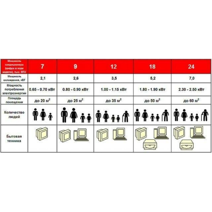 максимальная длина коммуникаций: 15 м; регулятор скорости вращения вентилятора; количество скоростей вращения вентилятора: 3; максимальный воздушный поток: 7.5 м³/мин; однофазный; мин. допустимая температура для эксплуатации кондиционера в режиме обогрева: 10 °C; площадь комнаты: 13 – 20 (м²)