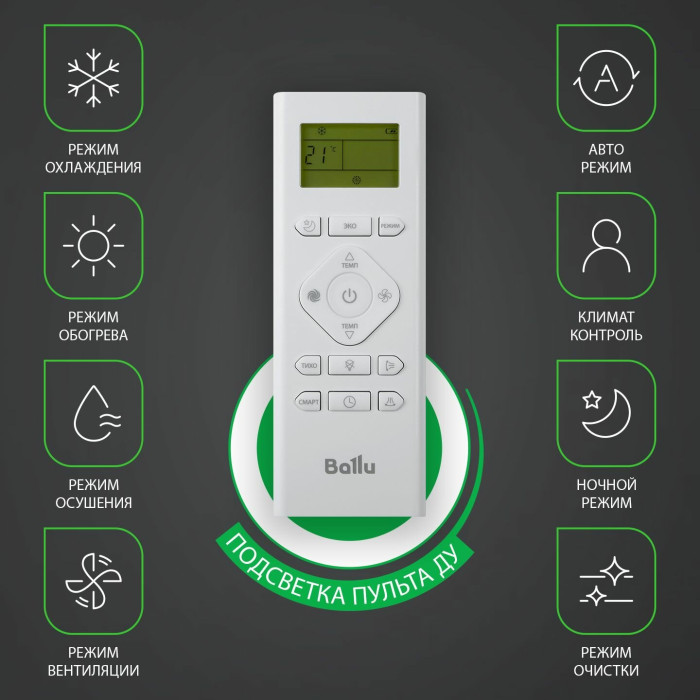 вентиляция, ночной режим, управление c мобильного приложения по Wi-Fi при подключении съемного модуля