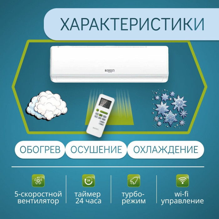 дисплей, индикация работы, пульт ДУ, регулировка направления воздушного потока, таймер включения/выключения