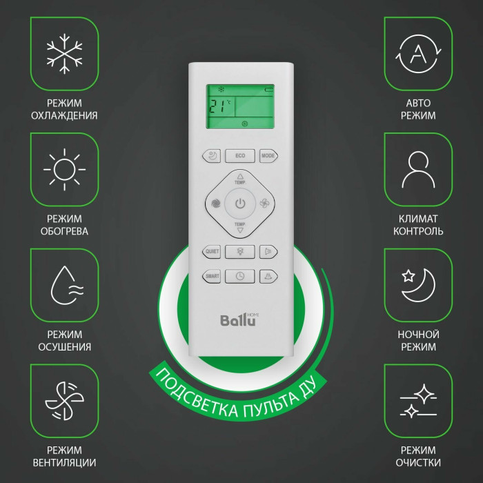 дисплей, индикация работы, пульт ДУ, регулировка направления воздушного потока, таймер включения/выключения