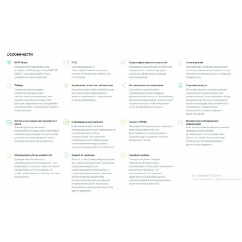 пульт ДУ, таймер включения/выключения, Авторестарт, Антикоррозийное покрытие, Диагностика неисправностей, Таймер выключения