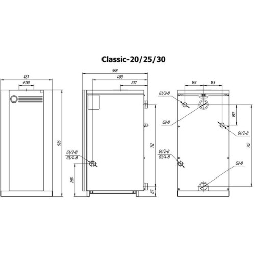 Котел серии Classic подходит для замены котлов «Лемакс» серии КСГ-д без изменения присоединительных размеров системы отопления.