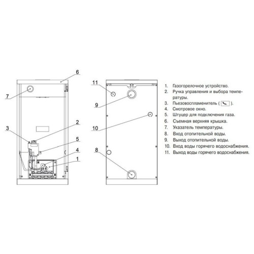 тип газогорелочного устройства - ГГУ-45; автоматика безопасности - 820 NOVA