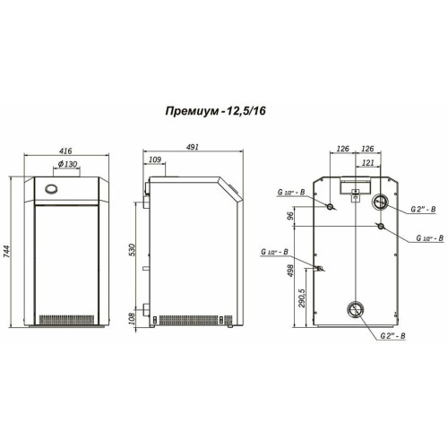 Котел серии «Премиум» с открытой камерой сгорания мощностью 12.5 кВт может работать в закрытой системе отопления с рабочим давлением до 3 атм. Газовый котел не требует подключения к электрической сети. Котел готов греть Ваш дом, дачу, гараж и даже баню. Теплообменник изготовлен из высококачественной стали толщиной 2 мм, соответствующей российскому ГОСТ 16523-97 и ГОСТ 9045-93. Котел газовый оснащен оригинальными компонентами газогорелочного устройства и автоматикой безопасности итальянского концерна SIT, а также инжекционной микрофакельной горелкой POLIDORO. Покрытие антикоррозийной эмалью (температура воздействия 950°С) и обработка ингибирующим составом защищают теплообменник от агрессивных факторов и растворов солей. Максимальный КПД за счет увеличения площади теплообмена и применения инновационной конструкции турбулизаторов для максимальной задержки отходящих газов. Усовершенствованная система защиты от перегрева теплообменника, прерывания тяги, сажеобразования, задувания котла. Удобство обслуживания котла за счет применения легкосъемной верхней панели. Имеет возможность перехода на сжиженный газ. Котел достаточно компактный и подойдет к любой планировке дома. Впишется в любой интерьер и послужит Вам долго и качественно.