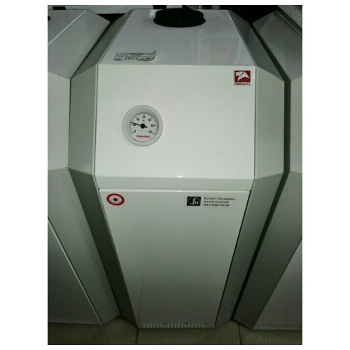 Мощность 16 кВт, площадь до 160 м2, одноконтурный, атмосферный, напольный. Скидочная карта 2%Газовый напольный котел Лемакс Премиум 16Лемакс КСГ-16 Премиум один из самых распространенных напольных отопительных газовых котлов для установки в частном доме, коттедже, даче, административных и промышленных помещений. Лемакс КСГ-16 Премиум является одноконтурным котлом, мощность которого 16 кВт. Котел Лемакс КСГ-16 Премиум мощностью 16 кВт рассчитан на площадь обогрева в 160 м2. Котел Лемакс КСГ-16 Премиум считается энергонезависимым, розжиг котла происходит от пьезо-элемента. Дымоход располагается на верхней крышке котла и выходит вертикально. Напольный газовый котел Лемакс КСГ-16 Премиум является одноконтурным и предназначен только для отопления. Газовый котел производится в России и является одним из лучших и надежных российских котлов. Тип газогорелочного устройстваГГУ-19Автоматика безопасности630 EUROSITНоминальная теплопроизводительность, кВт16КПД, %90Наличие контура ГВСодноконтурный Объем теплоносителя в теплообменнике, л24,5Максимальный расход природного газа, м3/ч1,9Средний расход природного газа, м3/ч0,95Рабочее давление теплоносителя, МПа0,3Номинальное давление природного газа, Па1300Диапазон разряжения, при котором обеспечивается устойчивая работа котла, Па4-25Температура продуктов сгорания, С, не менее110Максимальная температура теплоносителя на выходе из котла, С90Диаметр дымохода, мм130Присоединительные размеры патрубков к системе газоснабжения, дюйм1/2Габаритные размеры, мм744/416/491Масса, кг, не более51Срок заводской гарантии, лет3
