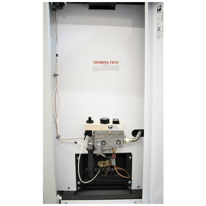 автоматика безопасности: 710 MINISIT; тип газогорелочного устройства: ГГУ-30; объем теплоносителя в теплообменнике: 41 л; средний расход природного газа: 1.5 м³/час; температура продуктов сгорания: не менее 110°С