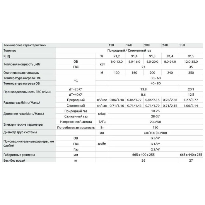 воздухоотводчик, встроенный расширительный бак, встроенный циркуляционный насос, манометр, предохранительный клапан, разъем для подключения внешнего управления