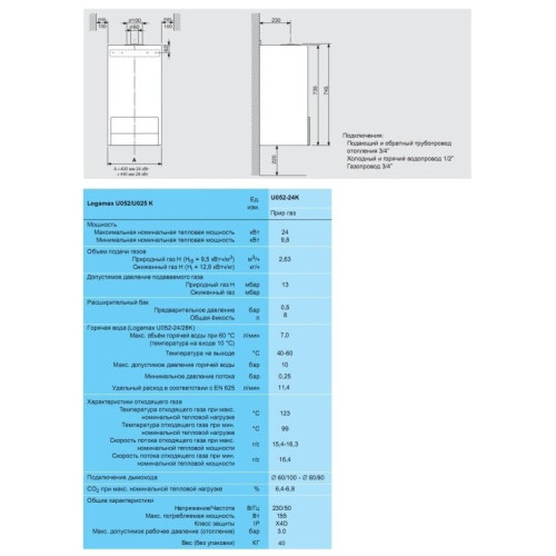 Если Вы цените высокое удобство отопления и легкость управления оборудования, то новые настенные газовые котлы, работающие на природном газе, определенно придутся Вам по вкусу. Logamax U052-24K — это комбинированный настенный котел с забором воздуха для горения из помещения или извне, со встроенной проточной системой приготовления ГВС. Котлы Buderus отлично подойдут для малогабаритных квартир, дач и загородных домов. Прибор служит для обогрева и горячего водоснабжения помещений площадью до 300 кв. м. Эти котлы являются оптимальным соотношением приемлемой цены и отличного качества. Система отвода дымовых газов может быть выполнена как с забором воздуха для горения из помещения, так и вне помещения. В таблице ниже мы видим общую схему всех котлов серии Logamax по типу отвода дымовых газов, приготовления воды для ГВС, системе управления и прочим деталям. Коэффициент полезного действия данных котлов варьируется от 90 до 92 %. Экологически чистый режим работы является ощутимым преимуществом для оборудования этой линейки. Во время нагрева бойлера ГВС сравнительно низкие поверхностные температуры уменьшают риск отложения солей кальция, содержащихся в питьевой воде. Все оптимизируется для работы без выпадения конденсата. Эти характеристики повышают надежность и долговечность приборов. Газовые настенные котлы Buderus имеет хорошие монтажные и сервисные характеристики, кроме этого, котлы не требуют обширного технического обслуживания. Лозунгом компании Buderus, выпускающей газовые котлы, является: " Всегда горячая вода, в любой момент. И с приятной температурой". История немецкой компании началась в 1731 году и с тех пор Buderus постоянно совершенствует представляемый ассортимент, являясь крупнейшим производителем теплового оборудования в Европе.