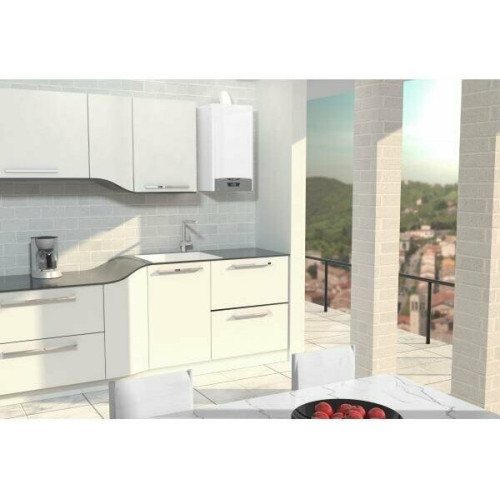 встроенный вытяжной вентилятор, встроенный нагнетательный вентилятор, дисплей, 1) Газовый котел - 1 шт 2) Документация 3) Крепежные элементы - 2 шт
