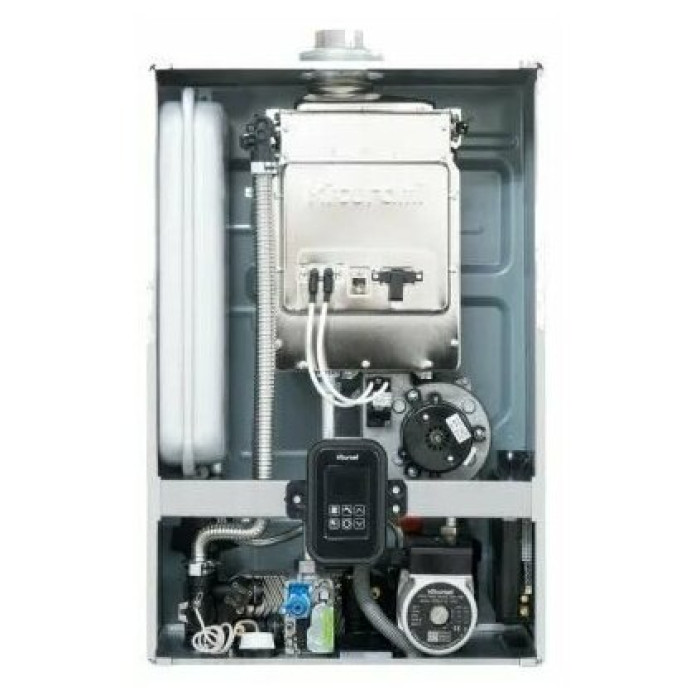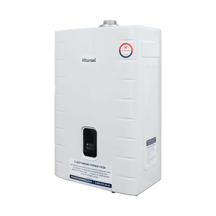Встроенный датчик утечки газа и пластинчатый теплообменник ГВС Блок управления, оснащенный системой выявления утечки газа, автоматически прекращает работу котла. Это позволяет предотвратить аварийную ситуацию. Модулируемая скорость вращения вентилятора обеспечивает оптимальное соотношение газа и воздуха в камере сгорания для экономичной работы котла. Модуляция также гарантирует стабильную работу при изменении сопротивления в системе дымоудаления из-за ветра. В случае сейсмической активности произойдёт блокировка подачи газа. Так же служит защитой от неблагонадёжного монтажа. В случае неисправности мигает контрольная лампочка, и на дисплее комнатного пульта управления отображается код ошибки. Это позволяет легко установить причину нештатной ситуации. Пластинчатый теплообменник горячего водоснабжения (ГВС) обеспечивает быструю регулировку температуры горячей воды с точностью до 1 °C даже при изменяющемся расходе воды. Котлы серии Kiturami World Alpha S оснащены двухуровневым первичным теплообменником из нержавеющей стали. Двухуровневая конструкция теплообменника спссобна обеспечивать щадящий уровень нагрева и равномерное распределение теплового потока без точек локального перегрева. Это в значительной степени продлевает срок эксплуатации оборудования. Преимущества такой конструкции ещё в том, что площадь поверхности теплопередачи увеличивается. Циркуляционный насос с мокрым ротором работает практически бесшумно. В случае отключения электропитания, перегрева теплообменника или неисправности вентилятора, системы дымоудаления, система безопасности автоматически прекращает подачу топлива. Инновационный контроль работы вентилятора с помощью датчика Холла, а не прессостата, исключает остановку котла из-за образования конденсата в трубках прессостата.