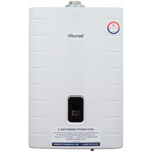 Встроенный датчик утечки газа и пластинчатый теплообменник ГВС Блок управления, оснащенный системой выявления утечки газа, автоматически прекращает работу котла. Это позволяет предотвратить аварийную ситуацию. Модулируемая скорость вращения вентилятора обеспечивает оптимальное соотношение газа и воздуха в камере сгорания для экономичной работы котла. Модуляция также гарантирует стабильную работу при изменении сопротивления в системе дымоудаления из-за ветра. В случае сейсмической активности произойдёт блокировка подачи газа. Так же служит защитой от неблагонадёжного монтажа. В случае неисправности мигает контрольная лампочка, и на дисплее комнатного пульта управления отображается код ошибки. Это позволяет легко установить причину нештатной ситуации. Пластинчатый теплообменник горячего водоснабжения (ГВС) обеспечивает быструю регулировку температуры горячей воды с точностью до 1 °C даже при изменяющемся расходе воды. Котлы серии Kiturami World Alpha S оснащены двухуровневым первичным теплообменником из нержавеющей стали. Двухуровневая конструкция теплообменника спссобна обеспечивать щадящий уровень нагрева и равномерное распределение теплового потока без точек локального перегрева. Это в значительной степени продлевает срок эксплуатации оборудования. Преимущества такой конструкции ещё в том, что площадь поверхности теплопередачи увеличивается. Циркуляционный насос с мокрым ротором работает практически бесшумно. В случае отключения электропитания, перегрева теплообменника или неисправности вентилятора, системы дымоудаления, система безопасности автоматически прекращает подачу топлива. Инновационный контроль работы вентилятора с помощью датчика Холла, а не прессостата, исключает остановку котла из-за образования конденсата в трубках прессостата.