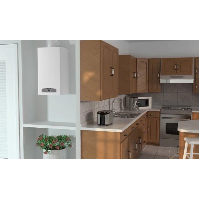 Модель Ariston CARES XC 24 FF NG – это стильный и энергоэффективный бытовой котел, используемый для обогрева помещений и налаживания подачи горячей воды в бытовых условиях. Данный агрегат оснащен усовершенствованной европейской комплектацией, имеет современную систему безопасности и способен стабильно работать в самых разных условиях. Особенности и преимущества Ariston CARES XC 24 FF NG: Закрытая камера сгорания Удобная и легкая настройка параметров работы с помощью ЖК-дисплея Подключение комнатного термостата и термостата-программатора для поддержания стабильной температуры в помещении Простой классический дизайн Жидкокристаллический дисплей с подсветкой Интуитивно-понятное управление Производится в Италии из лучших европейских комплектующих Долговечность за счет снижения количества циклов включения/выключения котла Встроенный расширительный бак Встроенный циркуляционный насос Встроенный 3-х ходовой клапан